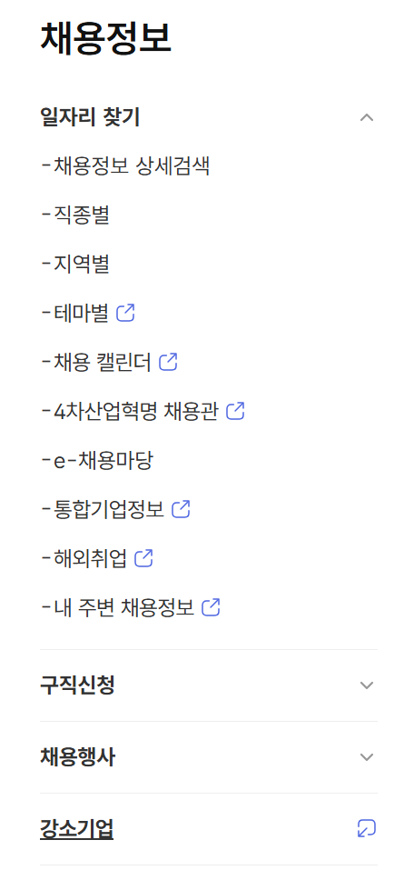 1️⃣ 고용24시 홈페이지 접속 후, 홈페이지 상단의 메뉴에서 원하는 서비스를 선택합니다.