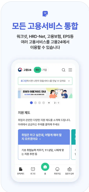 ‘고용24시’는 고용 관련 모든 서비스를 한곳에서 통합 제공하는 고용노동부 공식 포털입니다. 복잡하고 번거로운 절차 없이 간단한 본인 인증만으로 다양한 고용 지원 서비스를 이용할 수 있도록 마련되었습니다.
