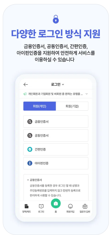 2️⃣ 공동인증서(구 공인인증서), 간편 인증(카카오톡, 네이버 등)을 이용하여 본인인증을 합니다.