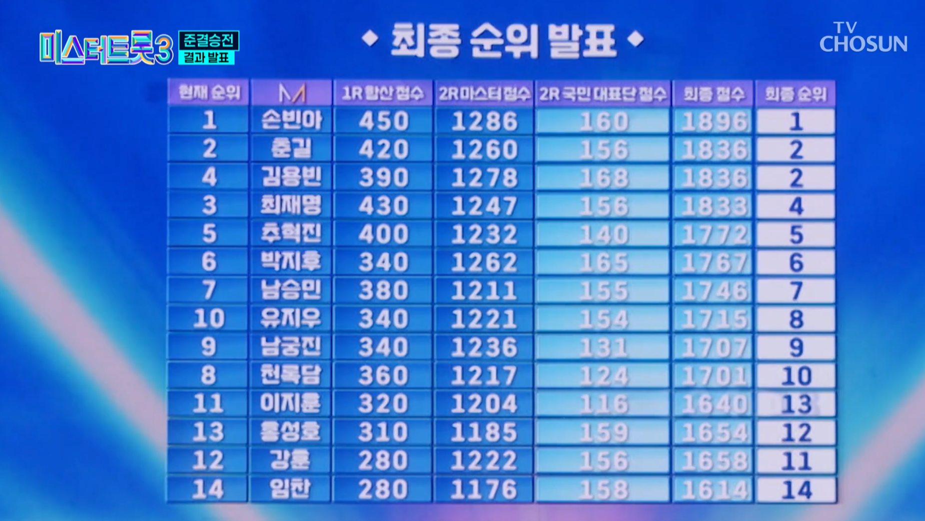 1. 미스터트롯3 결승신출자 TOP10 명단 (최종 준결승 결과)