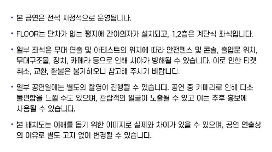 ✔ 일요일(3월 30일) 공연은 방송 촬영이 진행되며, 관객들의 얼굴이 방송에 노출될 수 있습니다.