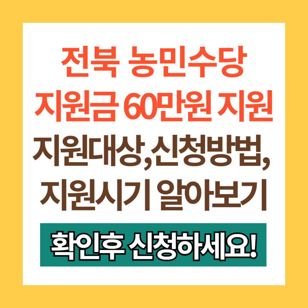 농업인들의 안정적인 생활을 지원하고 농업의 공익적 가치를 증진하기 위한 2025년 전북 농민수당 신청이 시작됩니다. 지원대상, 지급방법, 지급일정, 신청기간, 신청방법 등을 안내해 드리니 꼭 기한내에 신청하시기 바랍니다.
