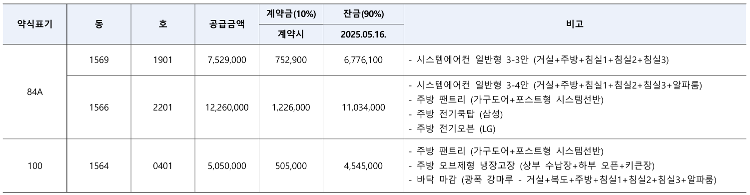 ✔ 발코니 확장 및 추가 옵션은 기존 계약 조건을 승계해야 하며, 변경/취소 불가