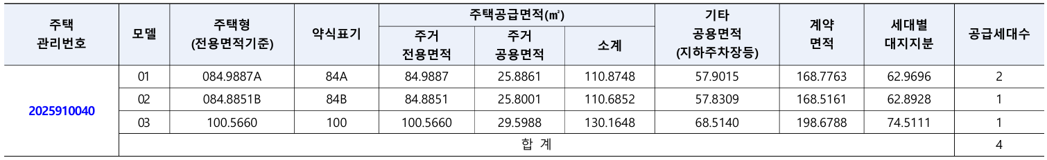 ✔ 공급세대수: 무순위(사후) 공급 4세대 (84A, 84B, 100 타입)