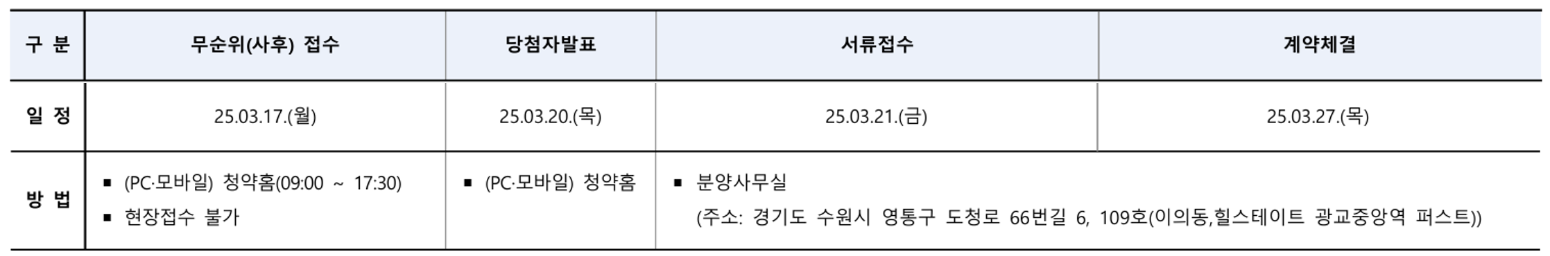 ✔ 청약 접수일: 2025년 3월 17일(월) 9시 ~ 17시 30분