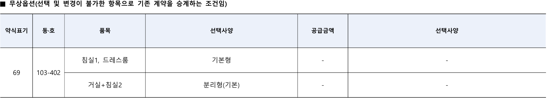 ✔ 공급 세대수: 일반공급 1세대 (69㎡ 타입, 103동 402호)