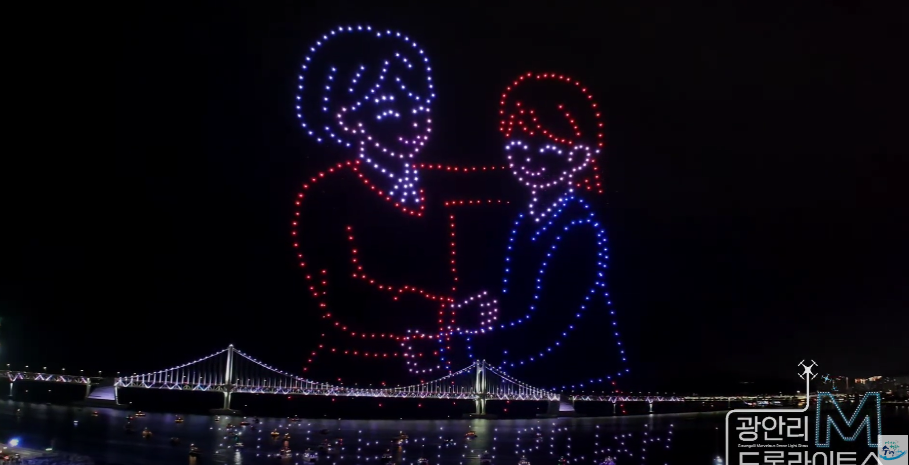 - 메인 무대에서 조금 떨어진 측면 뷰이므로, 드론이 만드는 세부 문양이나 글자는 다소 멀게 보일 수 있습니다.