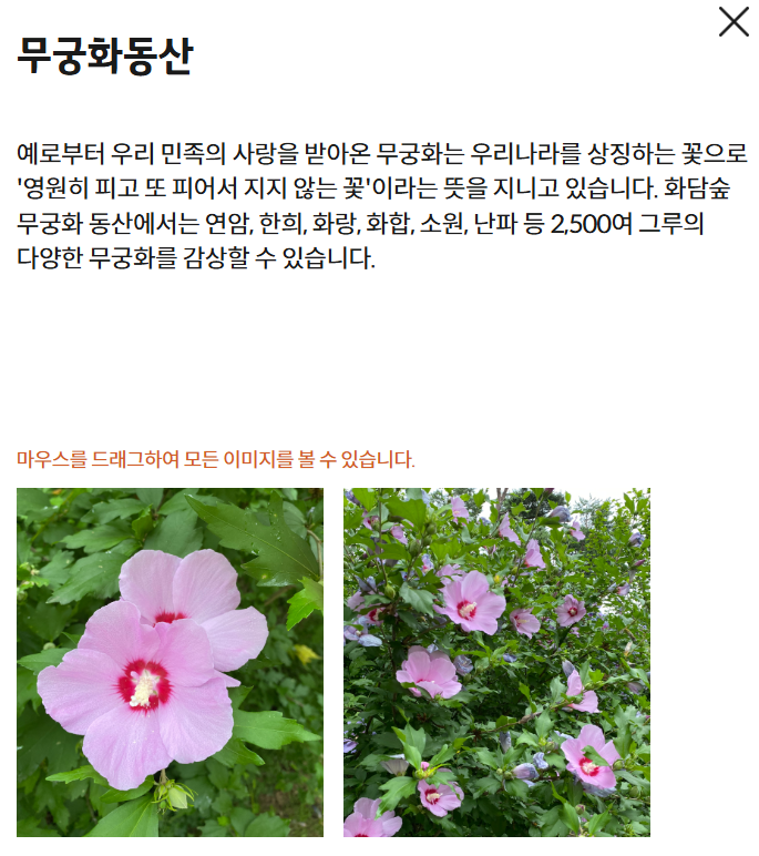 - 계절 및 기상 상황에 따라 운영시간과 개화 시기가 달라질 수 있으므로 방문 전 반드시 화담숲 공식 홈페이지에서 운영정보를 확인하시기 바랍니다.
